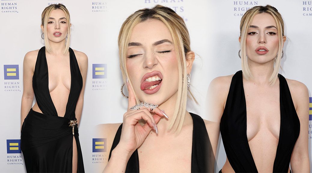 Ava Max Gorgeous Braless Cleavage March 27, 2023 1038 × 576 Ava Max stuns in Low-Cut Black Dress at Human Rights Campaign 2023 LA Dinner